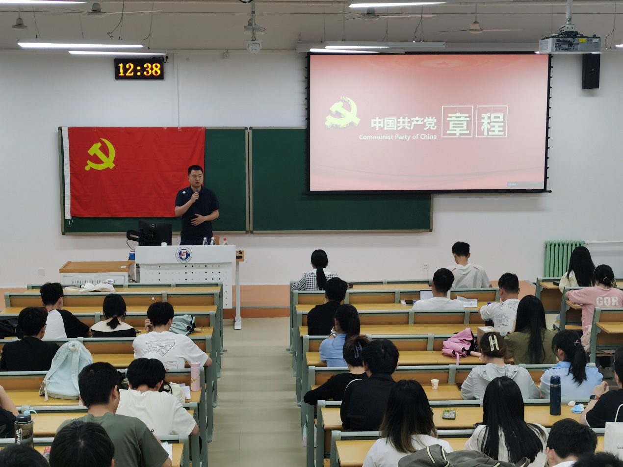2024年5月15日中午,3003新葡平台登录入口第57期入党积极分子培训班第三次党课在主B101举行。学院党委副书记王栋梁为全体学员系统详细的解读了《中国共产党章程》。