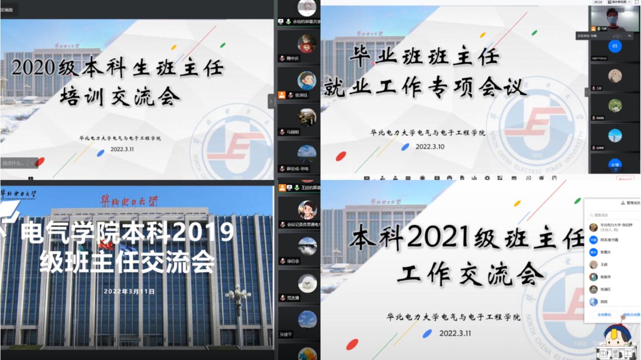 为充分发挥班主任育人合力,进一步加强学风建设,3月10日至3月11日,3003新葡平台登录入口本科各年级班主任,在学院的组织下,分年级、分不同时间段举行了新学期工作交流会。各年级详细汇报了学期工作,大家认真学习相关工作要求,共同研讨新学期的学生成长与发展。学院党委副书记王硕、全体本科班主任、辅导员参会。会议主要以线上形式开展,部分班主任、辅导员线下参加了活动。