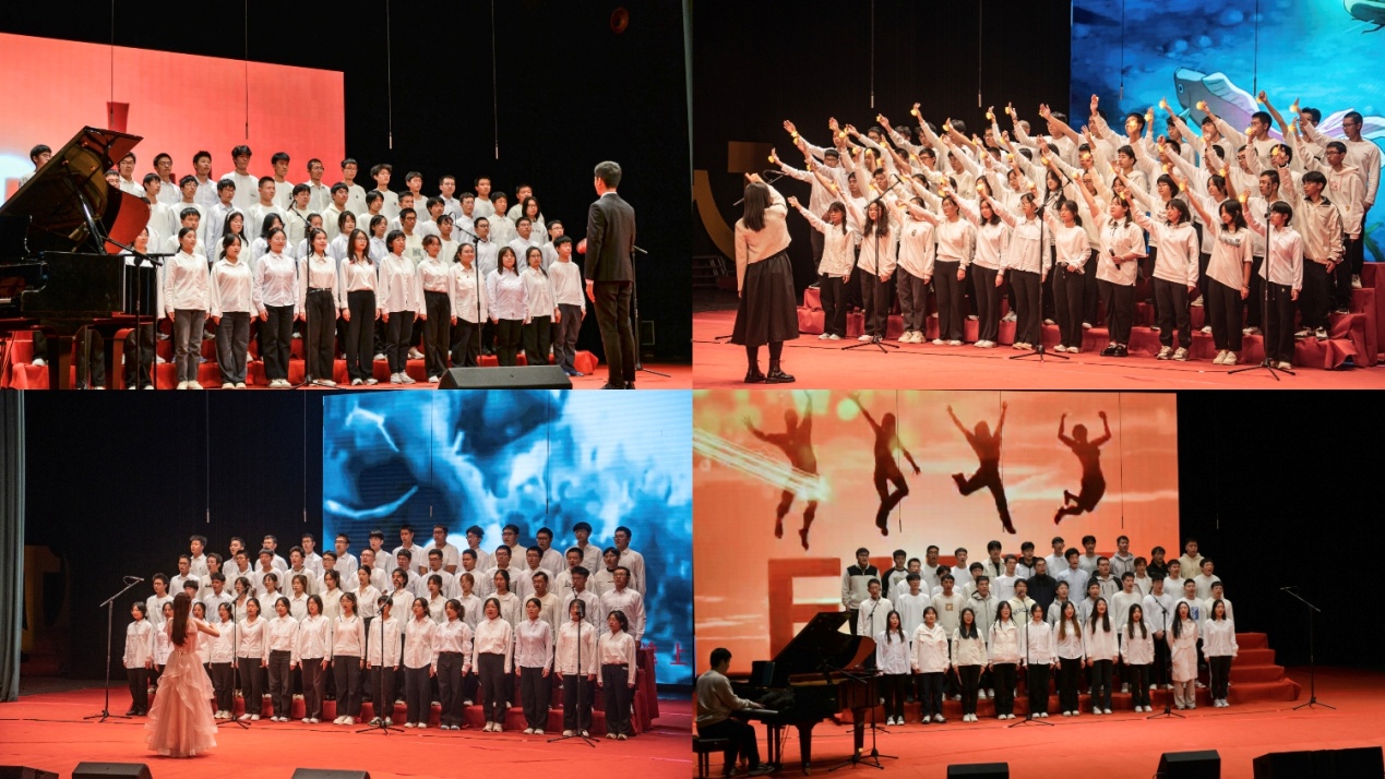 比赛现场气氛热烈非凡,各支参赛队伍精心准备,为观众们带来了一场精彩绝伦的视听盛宴。从满怀温情的《萱草花》到激昂澎湃的《保卫黄河》,从深情款款的《我爱你中国》到充满希望的《我的未来不是梦》,每一首歌都饱含着同学们对祖国的深深眷恋和美好祝福。