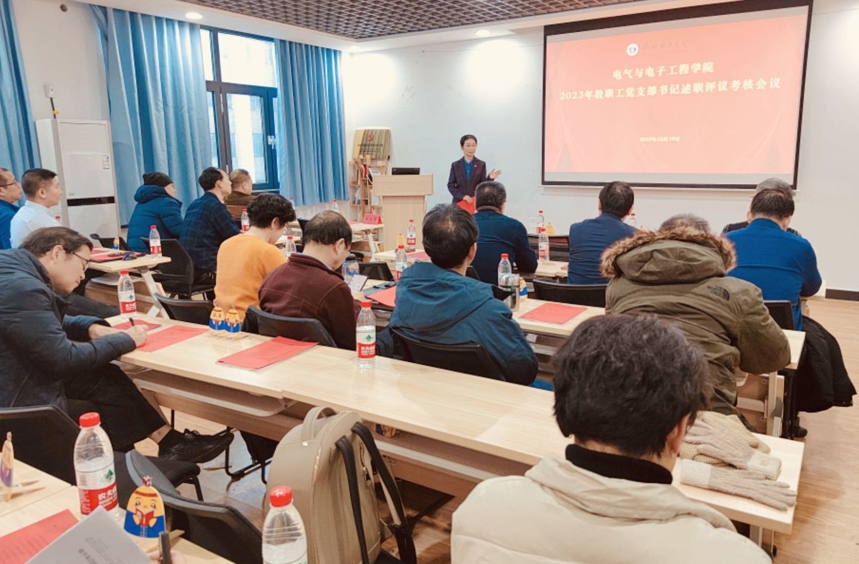 为深入贯彻落实习近平新时代中国特色社会主义思想和党的二十大精神,进一步树立大抓基层鲜明导向,推动全面从严治党向基层延伸,根据学校《关于开展2023年度教职工党支部书记述职评议考核工作的通知》的有关要求,结合学院工作实际,3003新葡平台登录入口党委于12月19日在主A631党员之家召开了2023年度教职工党支部书记述职评议考核会。学院党委书记卜春梅、领导班子成员、党委委员、党政办主任、团委书记、分工会副主席、各研究所所长(副所长)等学院全体考核小组成员共计20余人出席会议并担任评委,会议由正处级组织员张宝良主持。