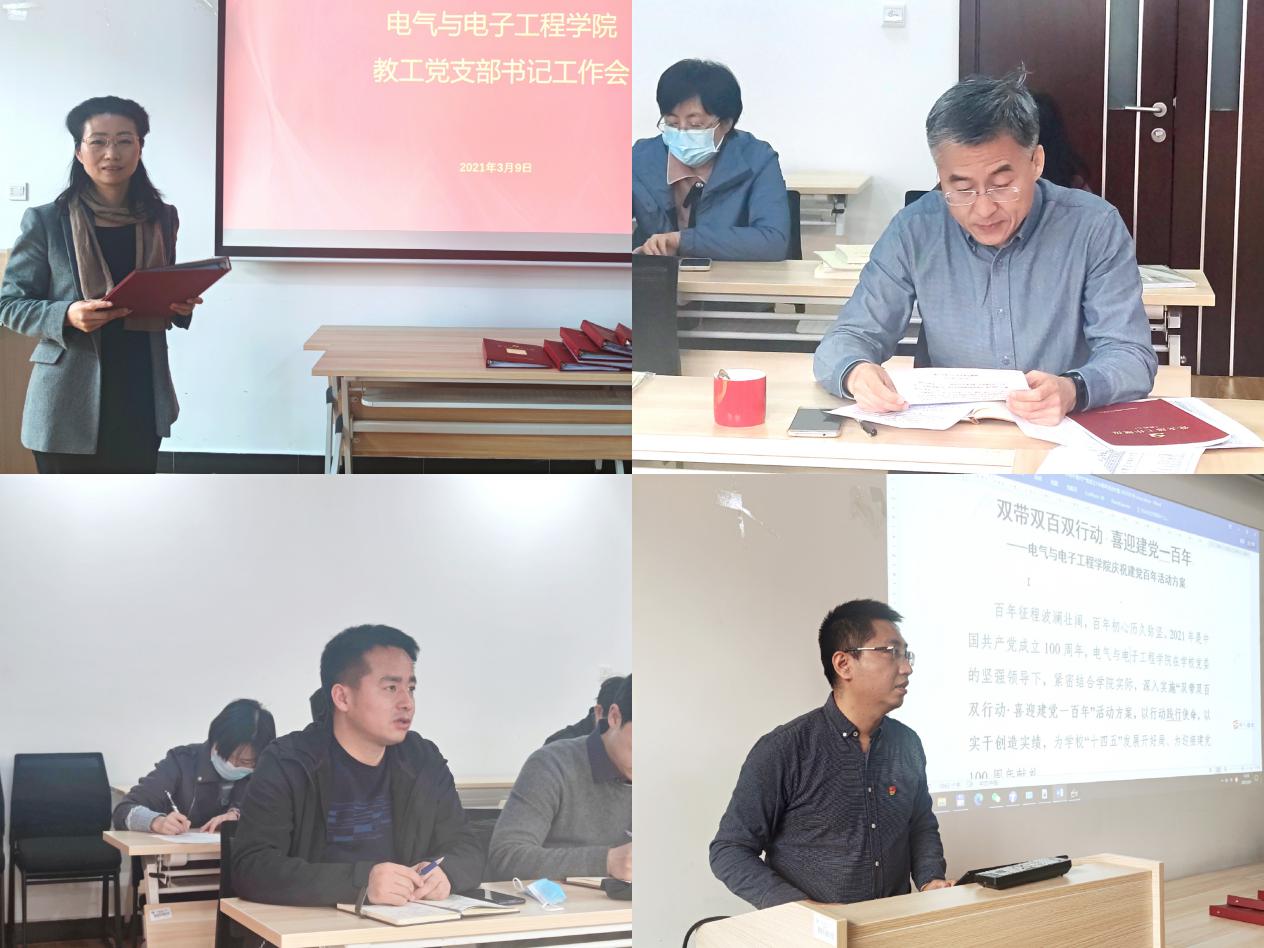 为贯彻落实学校2021年春季学期工作部署会议精神,持续提高党支部建设质量,在常态化疫情防控下继续加强党支部标准化、规范化建设,3月9日下午,3003新葡平台登录入口在主楼A631会议室召开教工党支部书记工作会。学院党委书记卜春梅、正处级组织员张宝良、党委副书记王硕、学院党政办公室主任刘春磊以及各教工党支部书记参加会议。会议由卜春梅主持。