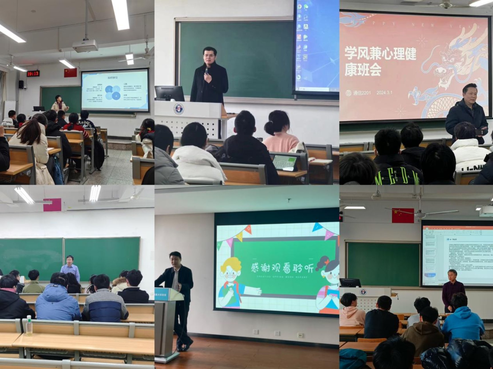 稳心理,护成长。为促进学生心理健康成长,塑造健全人格,各年级班主任老师们基于同学们的现实心理需求,多措并举促进心理健康,引导同学们深入了解心理健康的重要性,推动心理育人工作精准落地,进一步为心理育人工作夯实基础。博电2160班邀请学校心理健康教育中心余小霞老师开展了“以心汇智,从心出发”心理文化沙龙活动。余老师从人的情绪种类出发,为同学们讲述了隐藏在情绪之下的生理表现、主观体验和外部行为,透过情绪来认识核心自我,了解自身压力状态和身体状况的系统知识。研电2217班邀请学校心理健康教育中心杨丽华老师以“压力小解锁”为主题,分析了压力对个体成长的影响,并分享了一系列应对压力的实用方法与技巧。通信2201班组织心理辅导小游戏,并在游戏过程中启发大家用合理途径积极排解不良情绪。