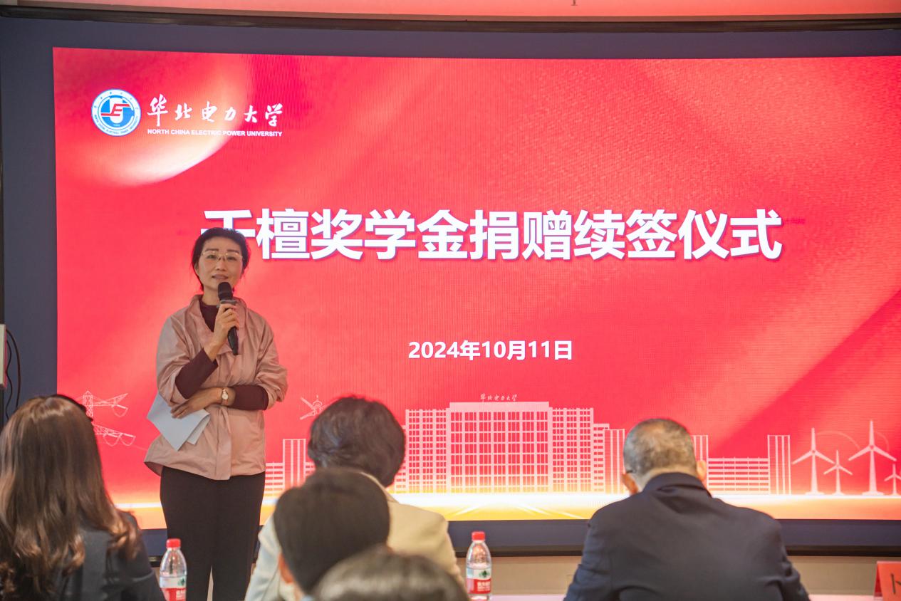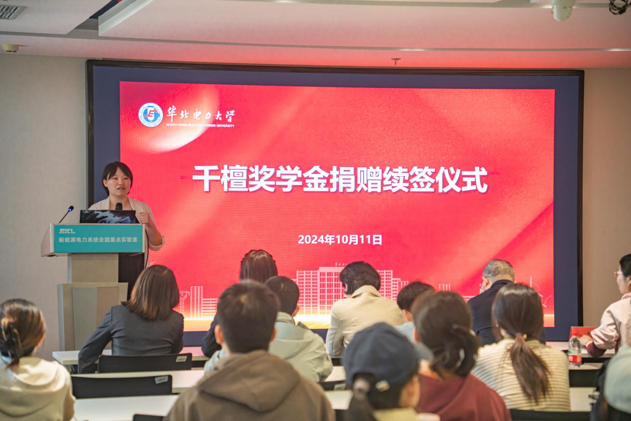 随后,千檀奖学金发起人07级校友杨薇介绍了奖学金的名称由来与设立初衷。奖学金的设立目标是全方位帮助到电气专业女学生,助力她们成为电力行业的中坚人才。