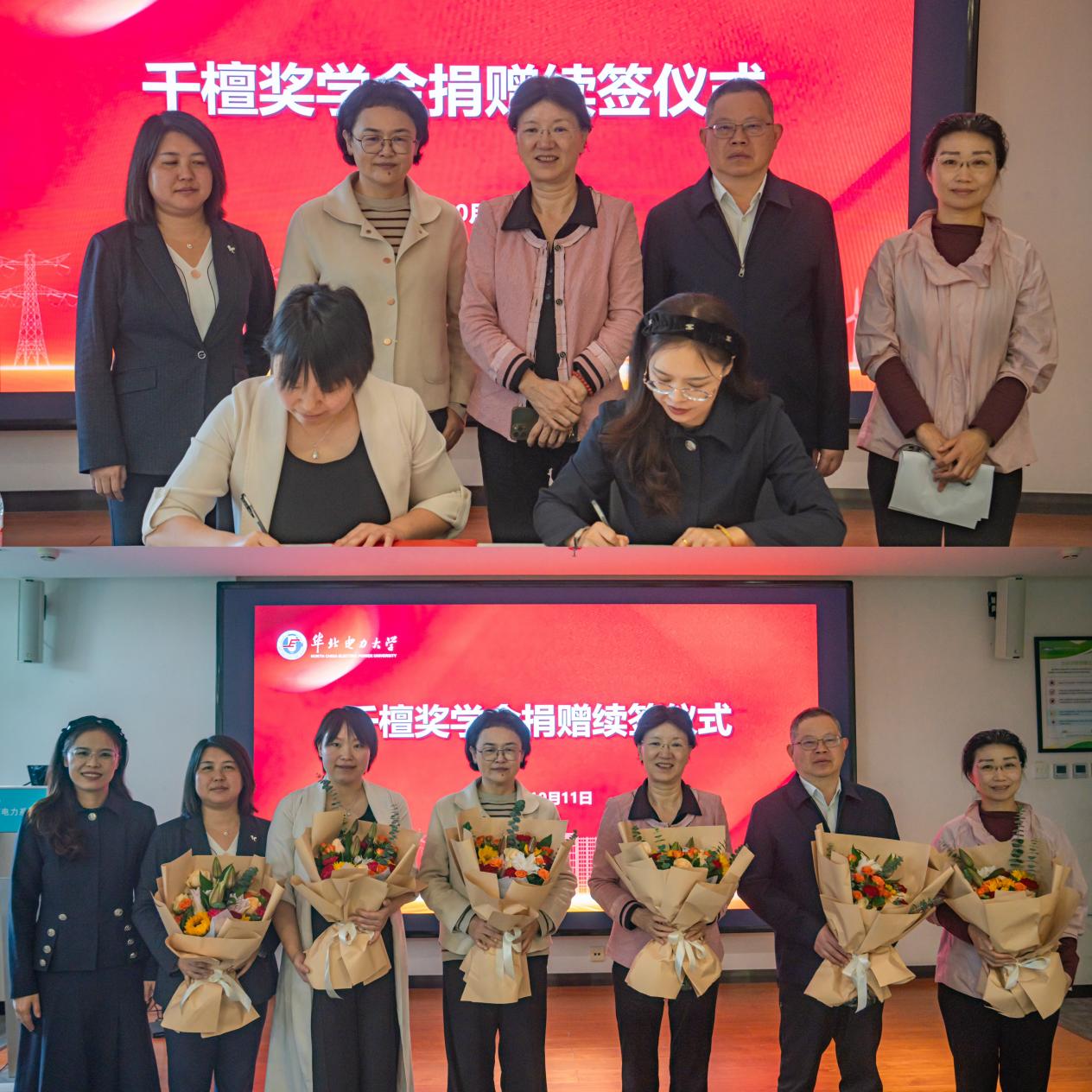 论坛最后,教育基金会副秘书长刘艳与千檀奖学金发起人杨薇签署捐赠协议,同学们为嘉宾献上花束与祝福。