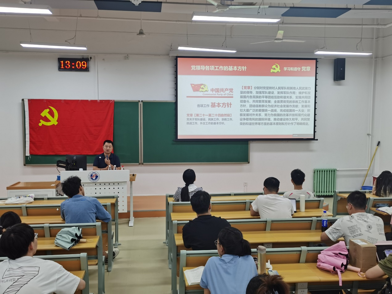 2024年5月15日中午,3003新葡平台登录入口第57期入党积极分子培训班第三次党课在主B101举行。学院党委副书记王栋梁为全体学员系统详细的解读了《中国共产党章程》。