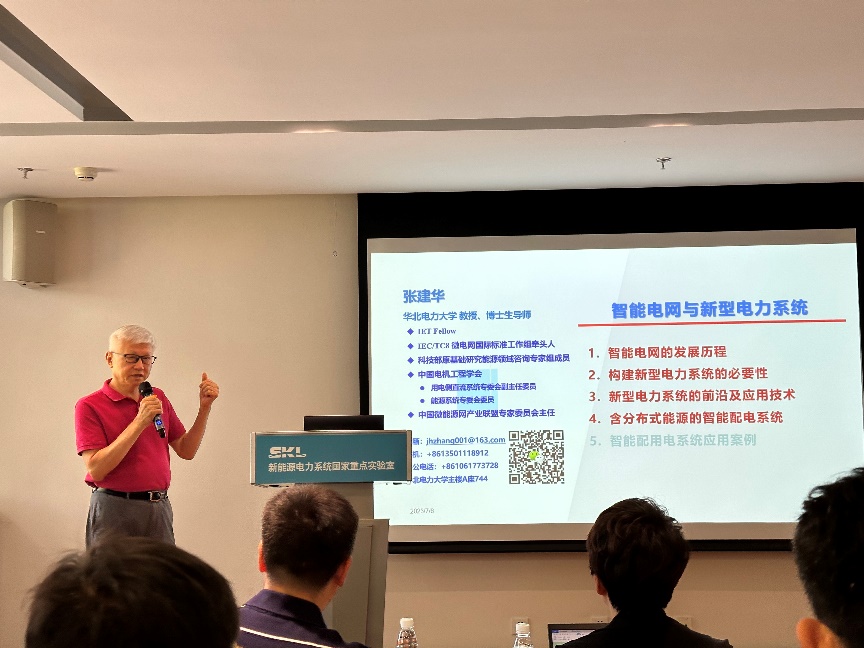 张建华教授以“智能电网与新型电力系统”为主题,结合国内外电力系统的实际情况梳理了智能电网的发展历程,并从我国电力系统的电力特征、新型电力系统的主要特征等方面进行概述,强调构建新型电力系统的必要性。张教授对人工智能和大数据技术、储能技术等前沿技术在新型电力系统中的应用进行了介绍,并以微电网、园区智慧能源互联网、虚拟电厂等含分布式能源的智能配电系统为例,对目前配用电系统研究的热门课题作出总结。