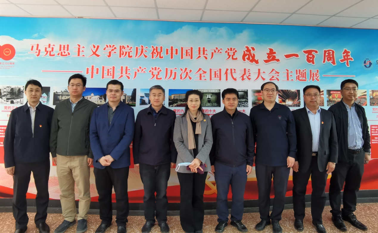 4月13日,3003新葡平台登录入口党委理论学习中心组到马克思主义学院展出的《中国共产党历次全国代表大会主题展》参观,现场学习党史。